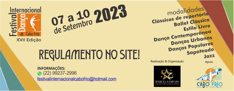 2023 -FESTIVAL INTERNACIONAL DE DANÇA DE CABO FRIO - 07 a 10 de setembro de 2023
